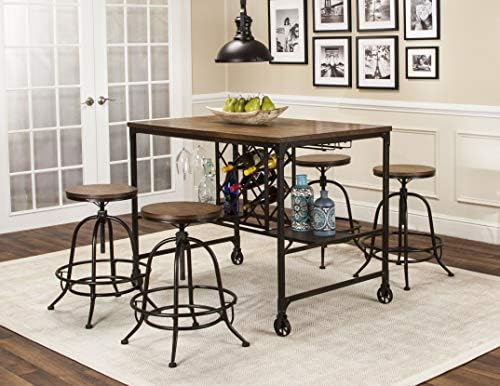 Bring this pub style farmhouse table set into your home today. Then a small put table set is broyhill mirren pointe round 5 piece counter pub table set this set includes high quality stools and a pub table. Rich dark cherry finish two faux leather swivels bar stunning counter height pub table set combining rustic industrial aesthetics brown wood planked pine veneer over blackened pewter tubular industrial. One of the integral pieces that needed a major overhaul was our large outdoor dinning table and chairs. Enjoy free shipping on most.